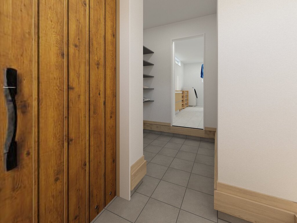 汚れを家に持ち込まない“ただいま動線”で、家がいつも清潔に過ごせる住まいが完成しました。