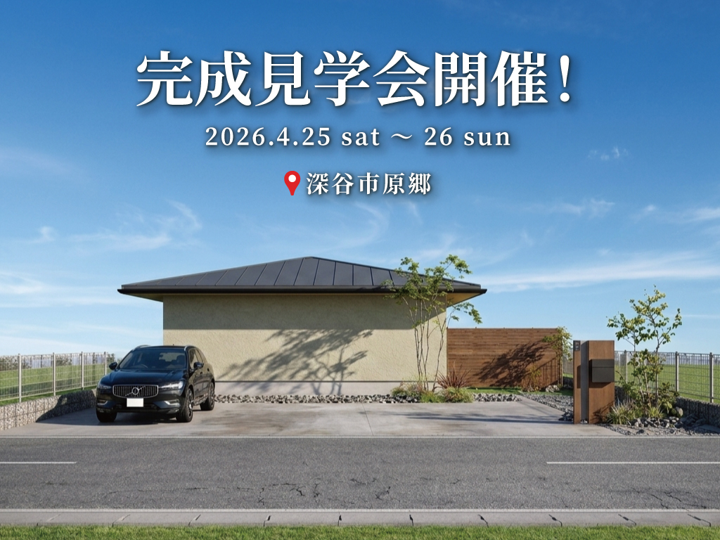 | タイトル | 『深い軒とやさしい光に包まれる、和モダンな平屋』完成見学会 |