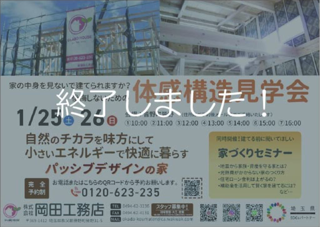 タイトル | 極寒の冬も酷暑の夏も秩父で快適に暮らす~構造見学会 |