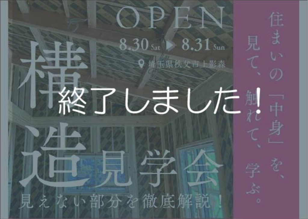 | タイトル | 【秩父市上影森】住まいの「中身」を見て、触れて、学ぶ!構造見学会 |
