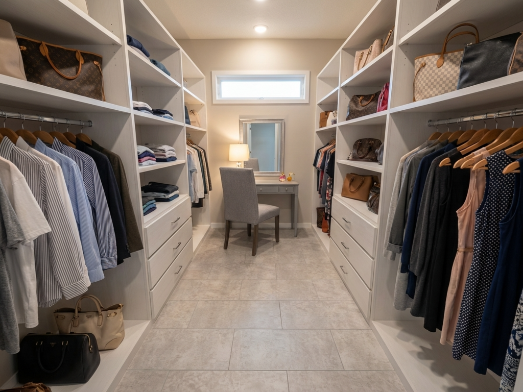 洗練された造作洗面台、視線を遮らない小上がりの畳コーナー、そして遊び心をくすぐる「隠し扉」の先の衣装部屋。