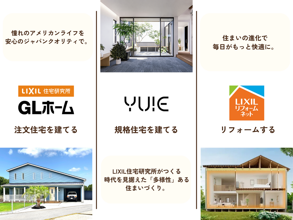 自由度の高い注文住宅でもなく、コスト重視の建売住宅と違うYUIE。YUIEはみんなの声をもとに、住まいのプロが多様化する暮らし方に合わせて考えた、新しいスタイルの規格住宅。“あなただけの”、理想と住まいを“結ぶ”、“唯一” の“家”それが YUIE です。