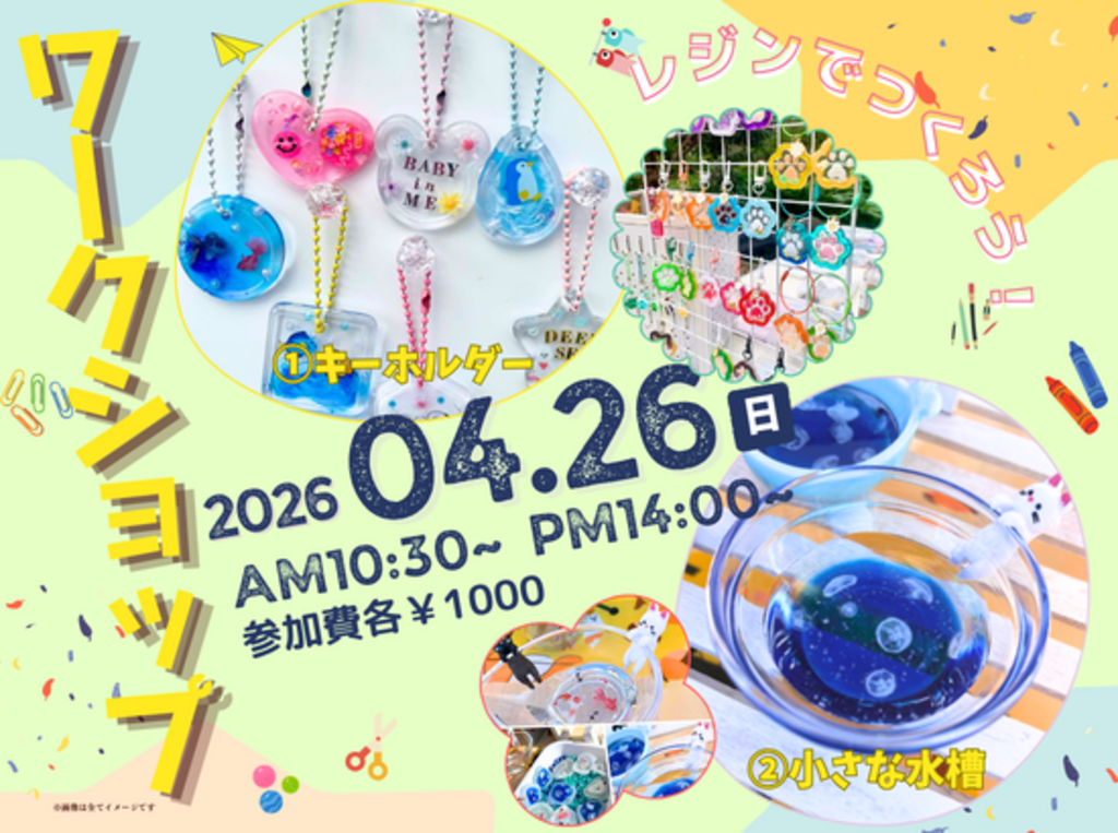 | タイトル | 【ワークショップ】レジンでつくる キーホルダー&小さな水槽 |