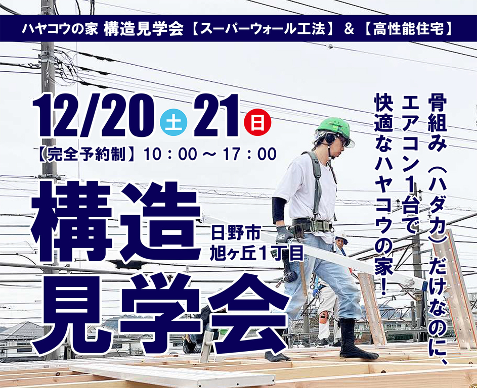 12/20(土)12/21(日)エアコン1台で快適!ハヤコウの家【構造見学会】日野市旭ヶ丘