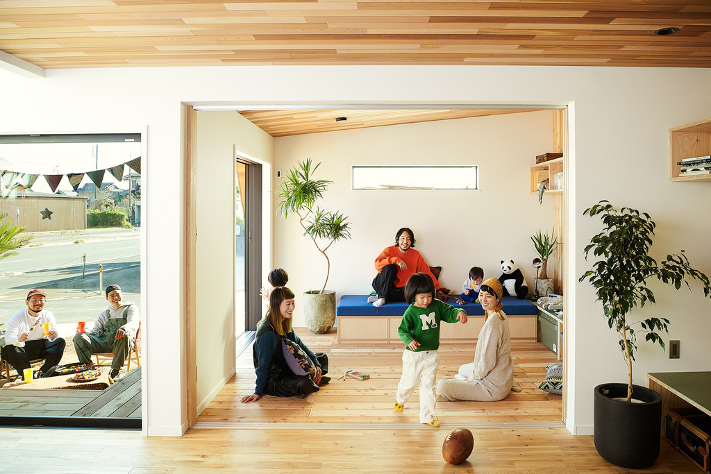 屋内外をつなぐウッドデッキ仕様で、