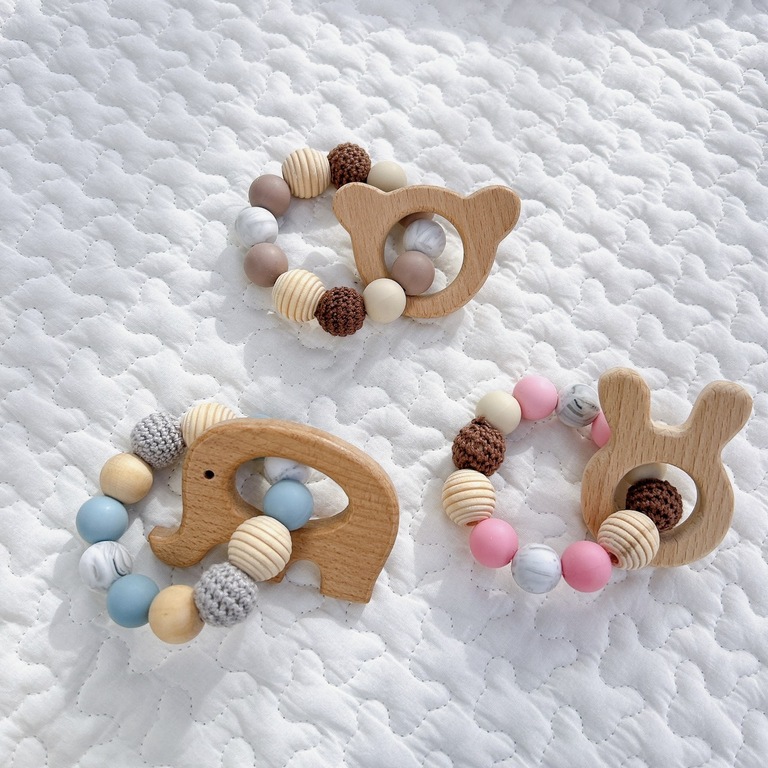 シリコンビーズや天然木素材を使用した歯固めをつくることができます。