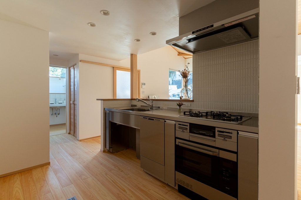 対面でありながら、開口部を少なくして料理に集中できるキッチンに。料理やお菓子作りを思う存分楽しめる、お気に入りのキッチンになります。