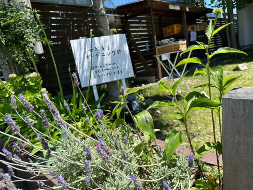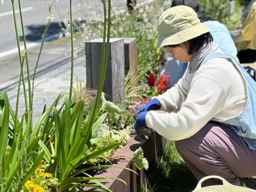 実際にHidamariCafeの花壇づくりをしながら