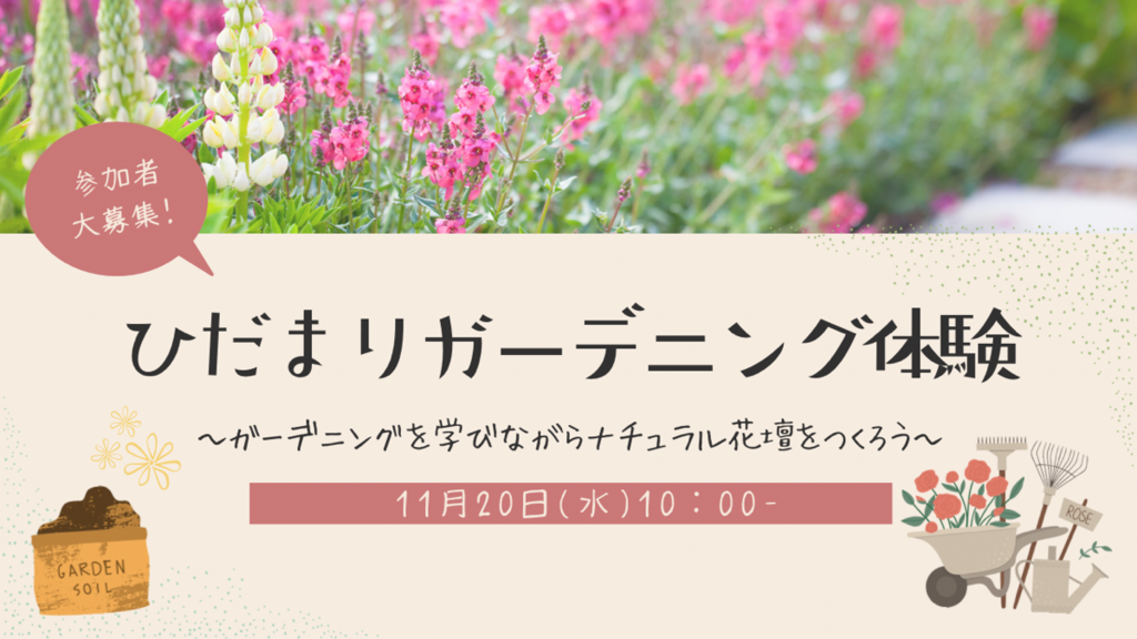 | タイトル | ナチュラル花壇をつくるガーデニング体験〜球根と花苗の植え付け〜 |