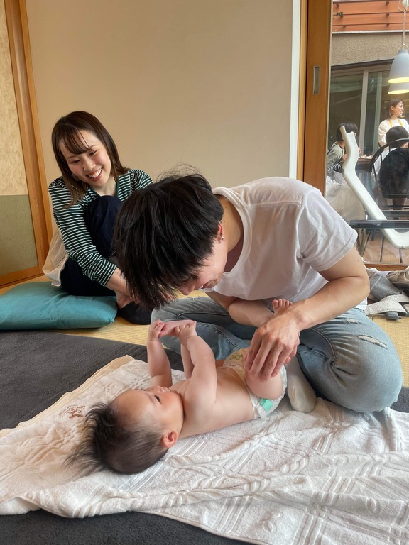 パパメインでベビーマッサージを行います