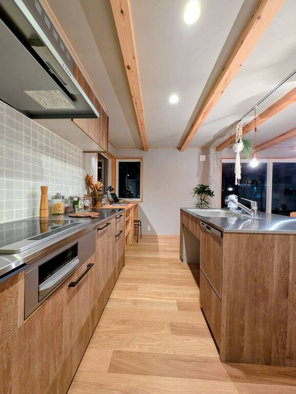 明るく開放的な空間に上質な北欧テイストの内装を設えました。水平ラインを強調した安定感のある佇まいの外観に機能的な間取り、木の温もりを感じながら日常を愉しむための住まいです。