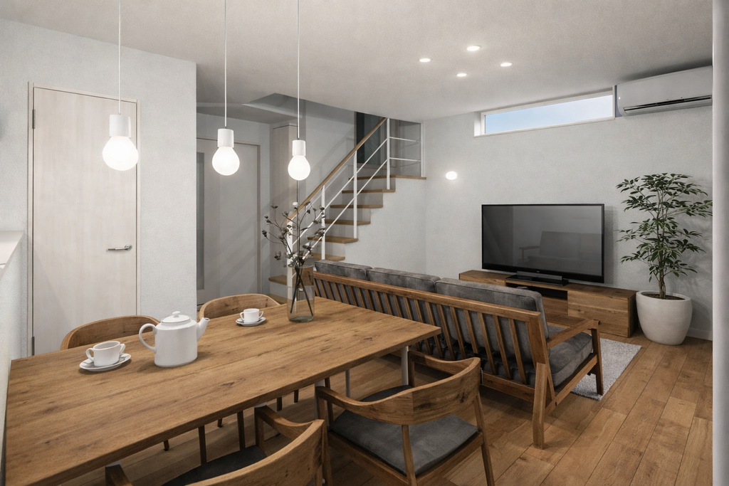 リビングからダイニングまで視線が抜けることで、実際以上の広がりを感じられます。