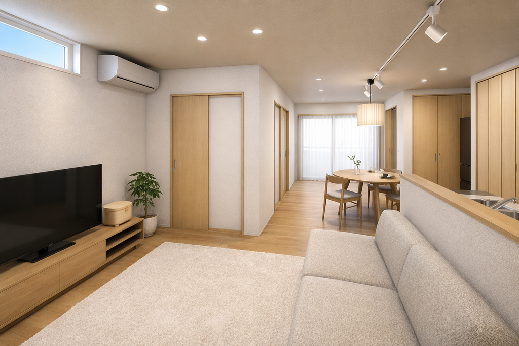 畳スペースとLDKがゆるやかにつながることで、視線と気配が自然に行き交います。