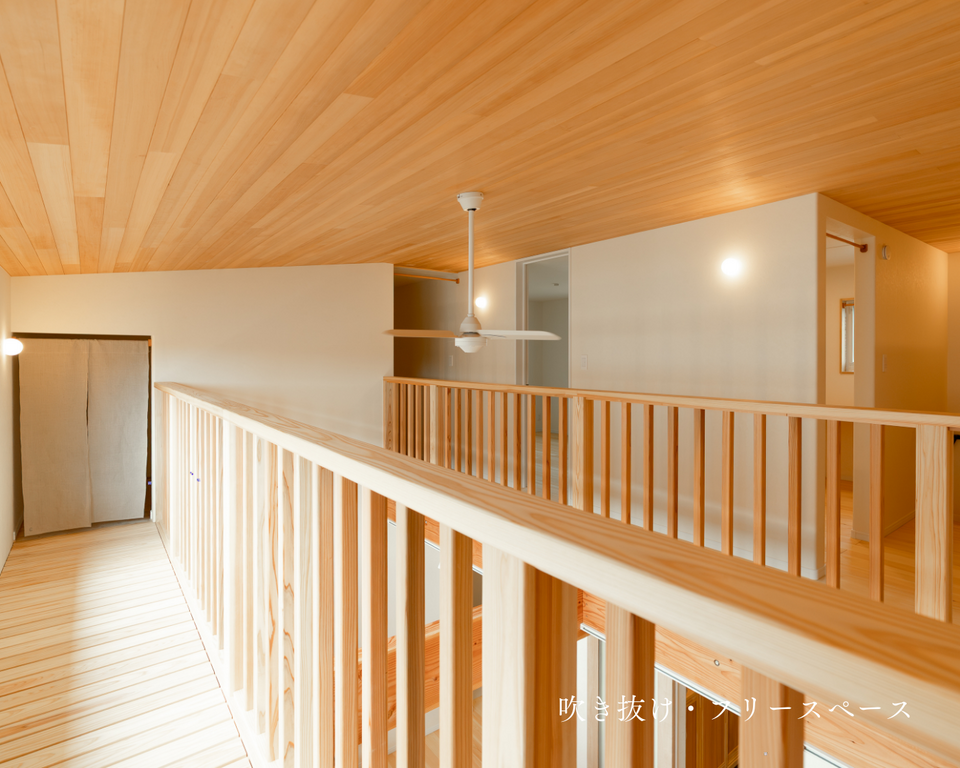 2階のフリースペースは吹き抜けを囲んでキャットウォークと繋がる、大人もワクワクするまさに秘密基地。