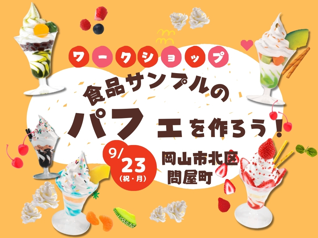 タイトル | 【9/23(祝・月)岡山市北区問屋町】食品サンプルのパフェを作ろう! |