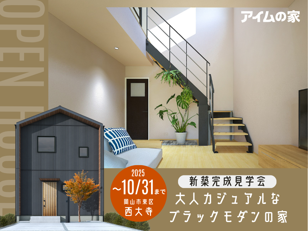 | タイトル | 大人カジュアルなブラックモダンの家 【新築見学会/岡山市東区西大寺】10/31まで |