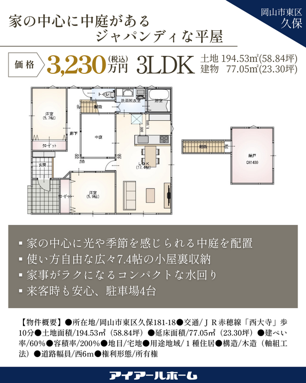 【岡山市東区久保】中庭と小屋裏収納のある家 見学販売会