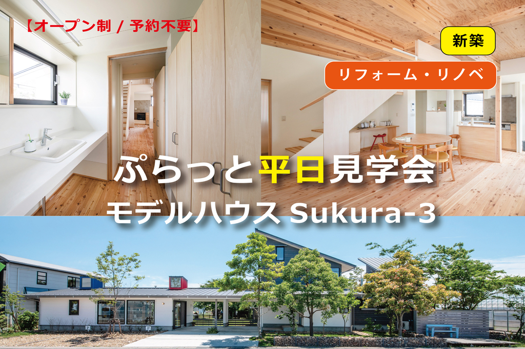 | タイトル | ぷらっと平日見学会モデルハウスSukura-3 【予約不要】 |