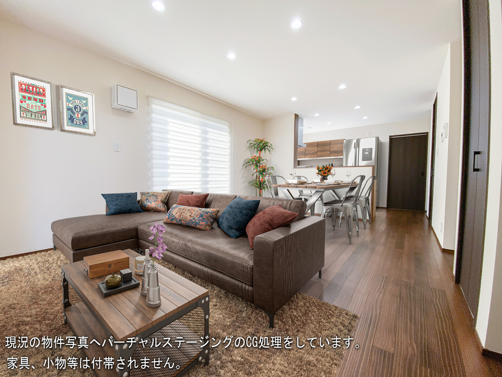 現況の物件写真へバーチャルステージングのCG処理をしています。家具・小物等は付帯されません。
