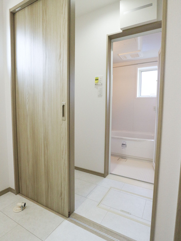 脱衣室付きで、入浴時も洗面利用時も安心の間取り。