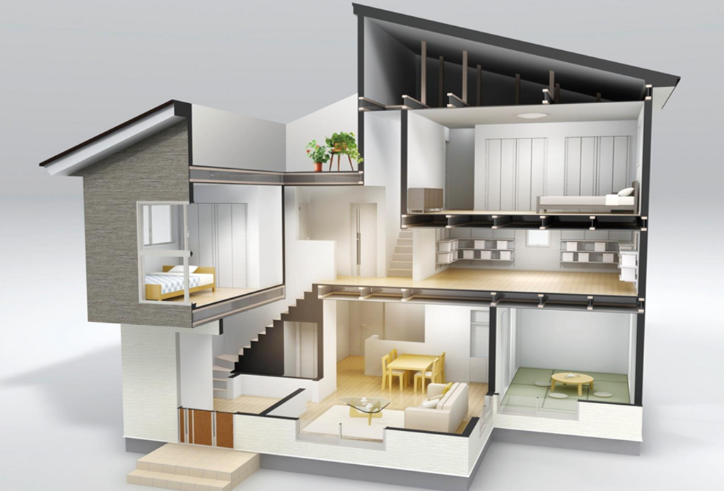 近年人気の平屋建て住宅をベースに、スキップフロアを活用した1.5階建ての展示場がご覧いただけます。