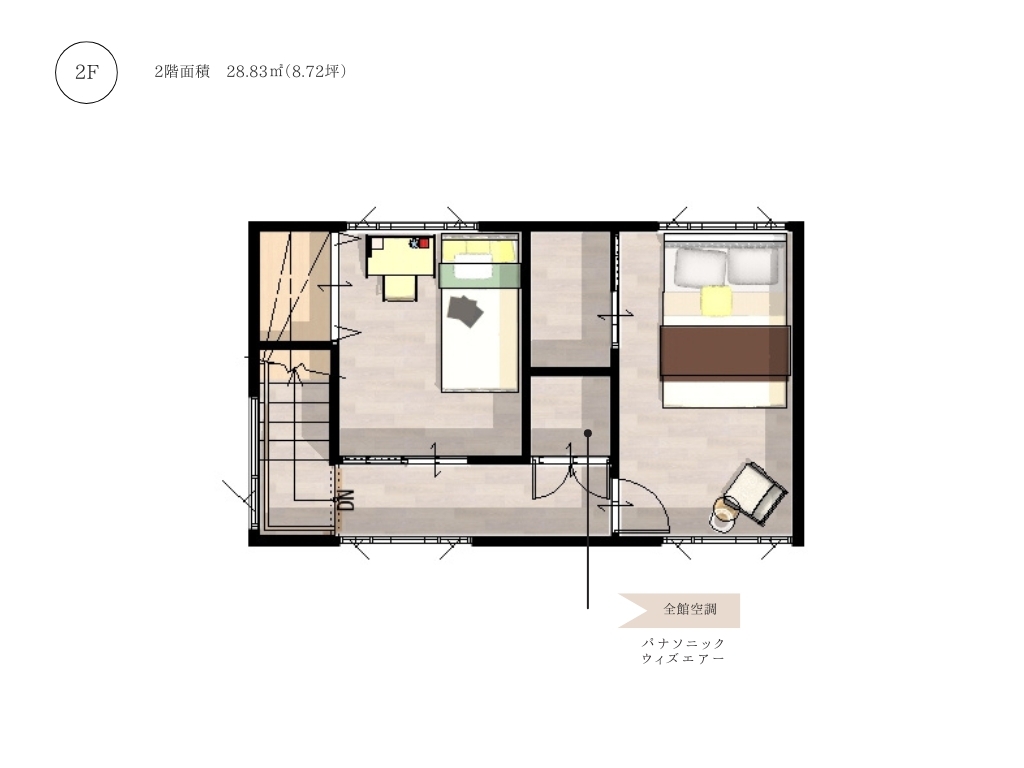 エアコン一台で家中の空気を循環させて室温を一定に保ちます。