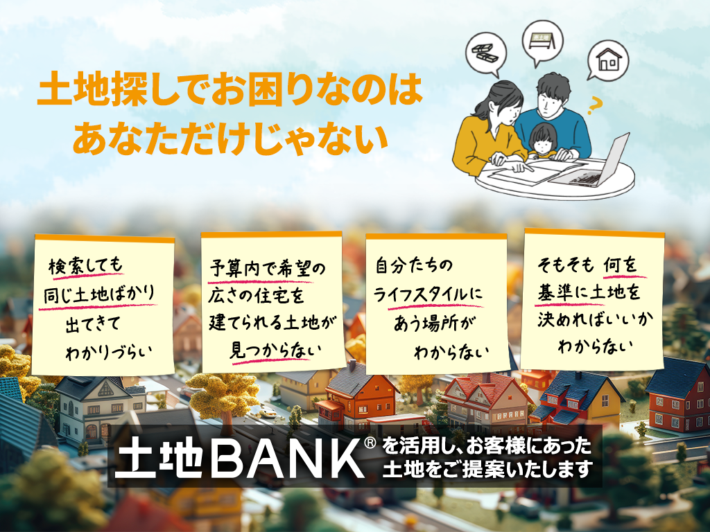 そんな方に土地BANKを活用し、お客様にあった土地をご提案いたします。
