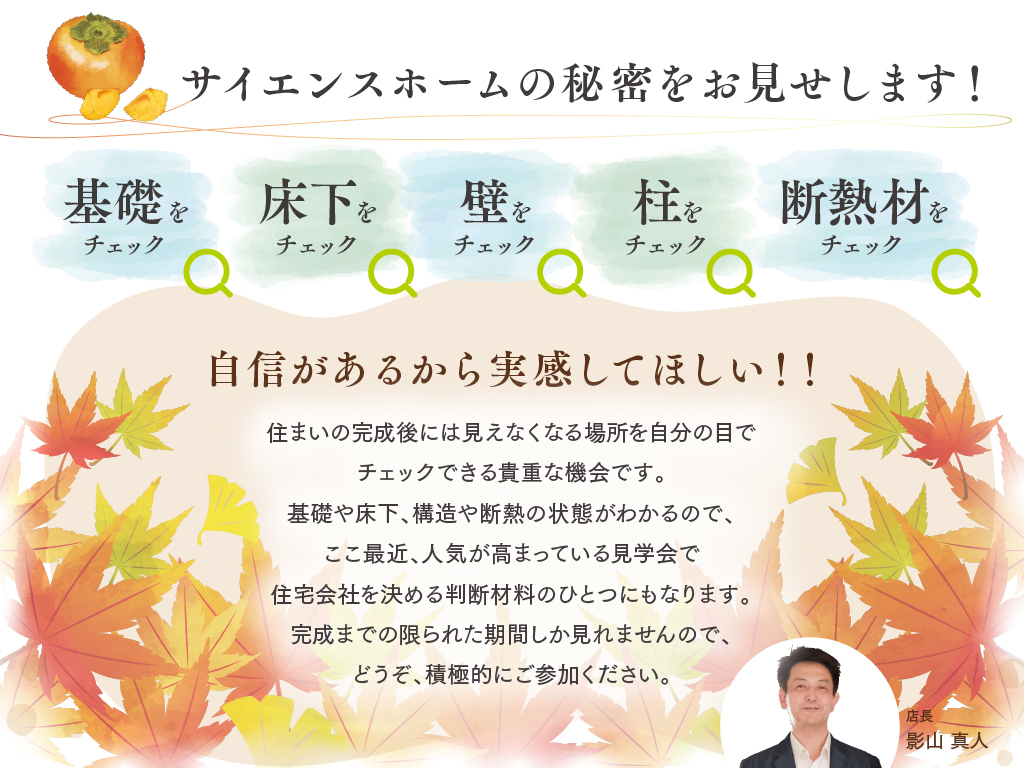 住まいの完成後には見えなくなる場所を自分の目でチェックできる貴重な機会です。