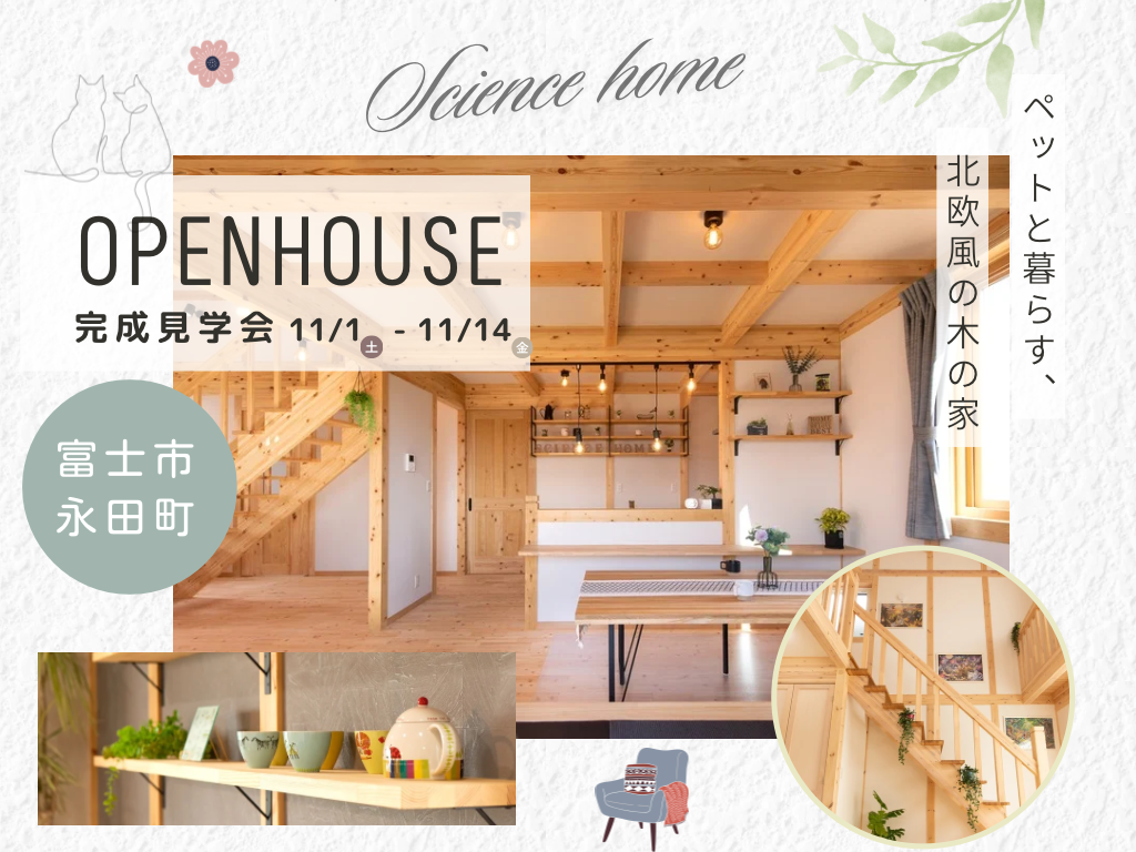 タイトル | 【完成見学会】富士市永田町☆ペットと暮らす、北欧風のお家 |