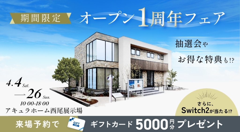 | タイトル | 今だけ!展示場オープン1周年記念フェア |