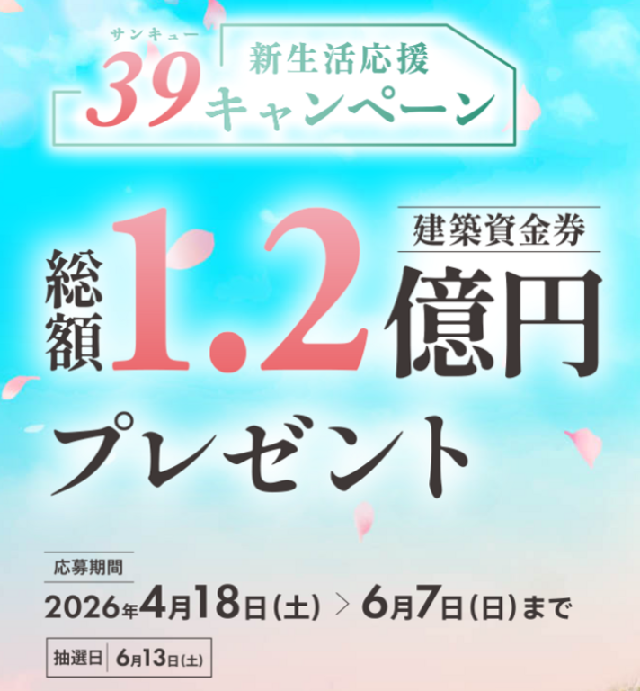 | タイトル | 新生活応援キャンペーン 総額1.2億円建築資金券プレゼント |