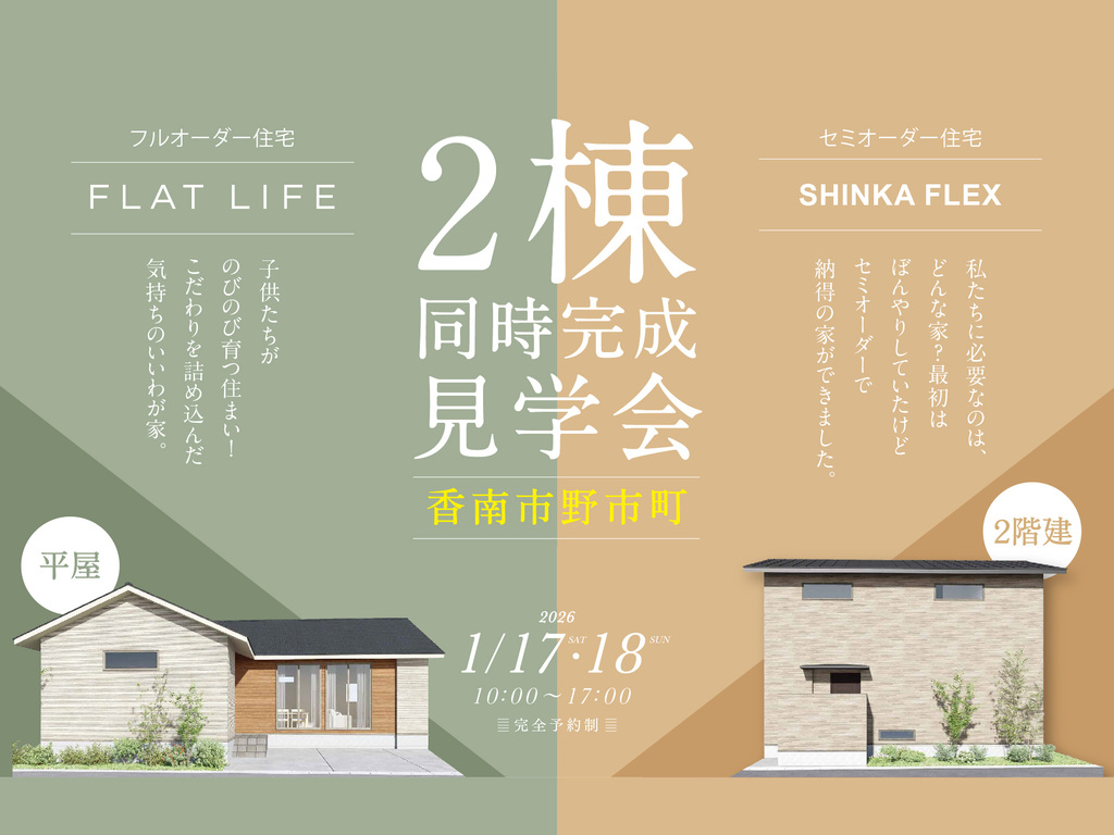 【香南市野市町】平屋と2階建、見比べて納得!2棟同時完成見学会