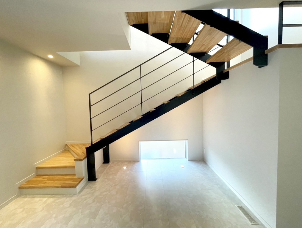 ③ご主人様こだわり。緩やかなステップのフルオーダースチール階段