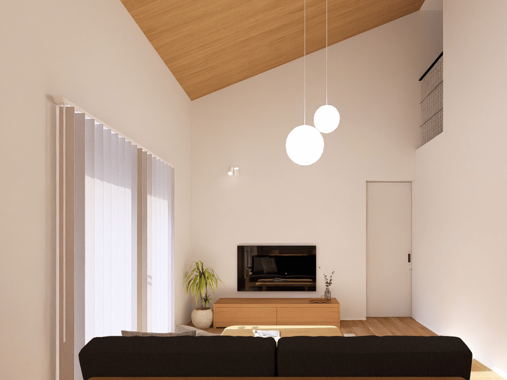 20帖のLDKと吹き抜けがつくる開放感は、子どもがのびのび過ごせる日常を育む空間です。高気密・高断熱で室内の温度差を少なくし、生活音のストレスも軽減。自由に遊べて、親も安心していられる環境が整っています。