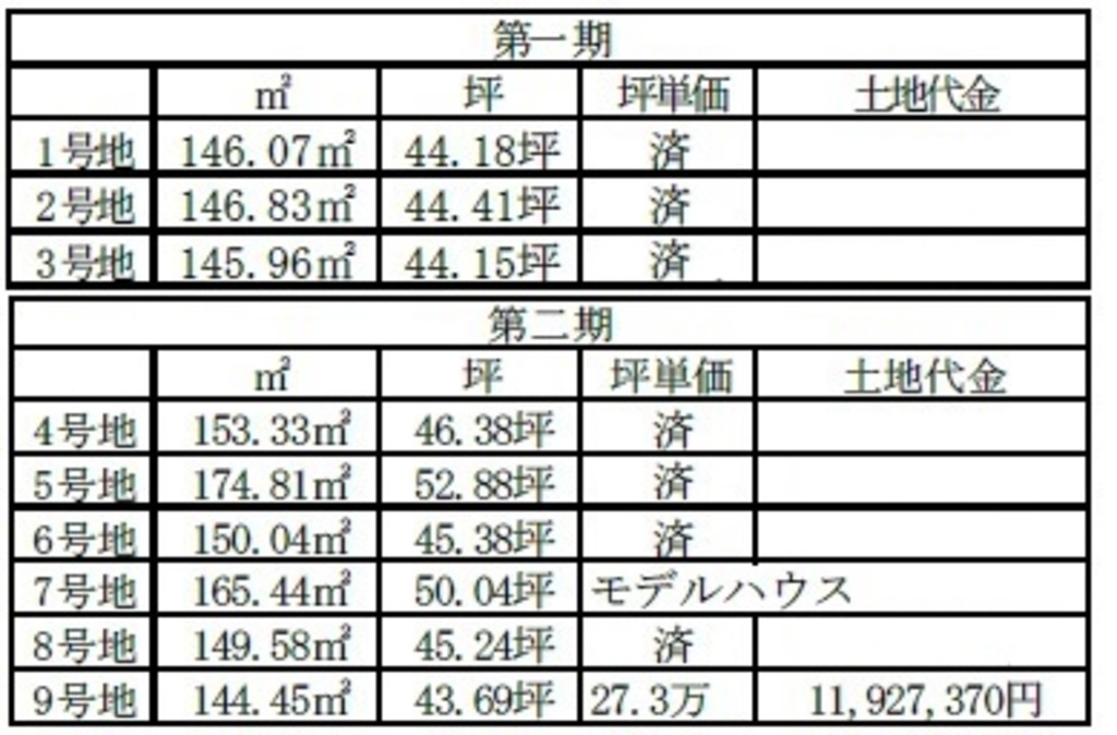 | 総区画数 | 9 区画 | 今回販売区画数 | 2 区画 |