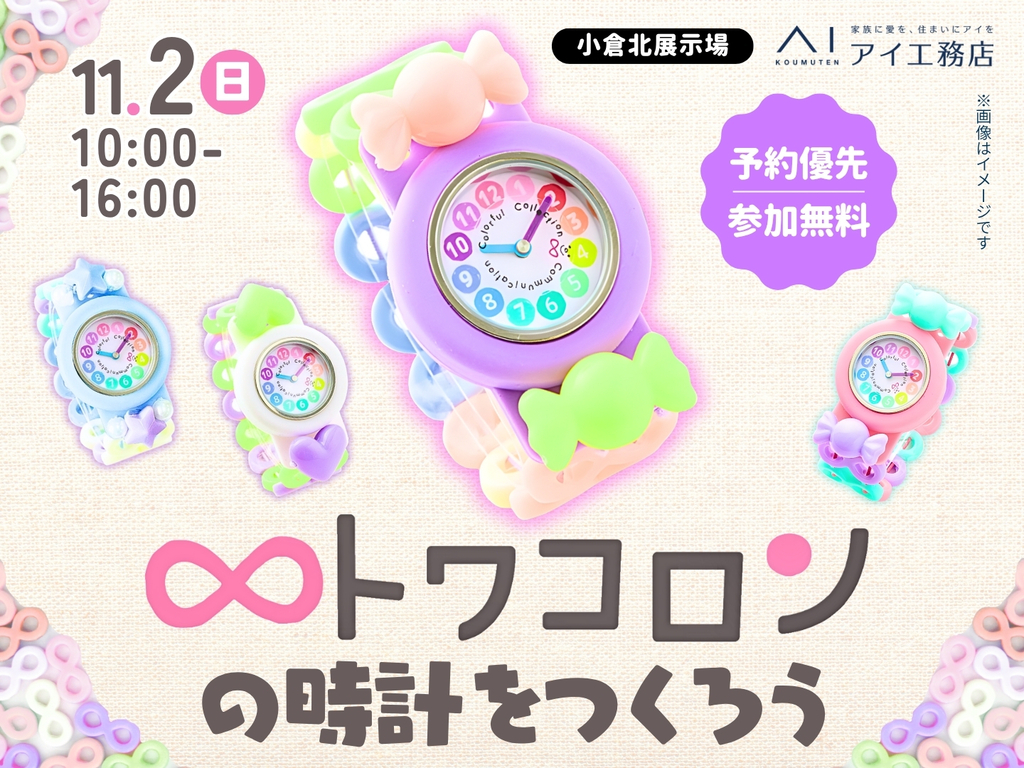 タイトル | 小倉北展示場 色とりどりでかわいい✨トワコロンの時計をつくろう |
