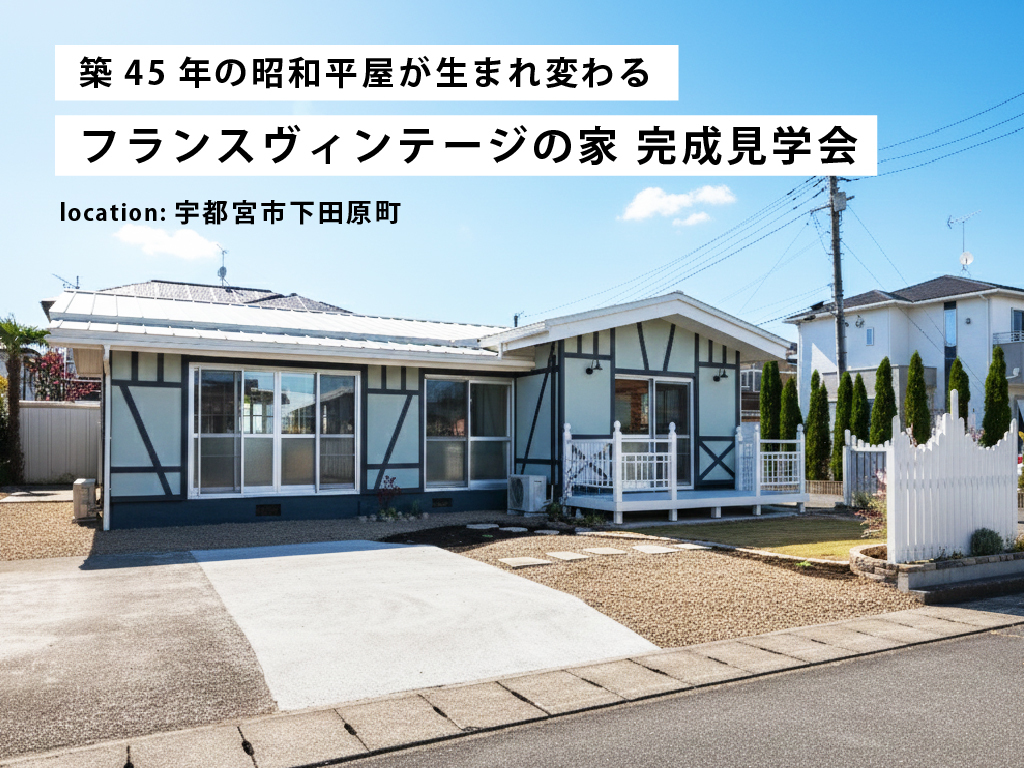 | タイトル | 光と緑を招き入れる「フランスヴィンテージの平屋」/ 宇都宮市下田原町 |