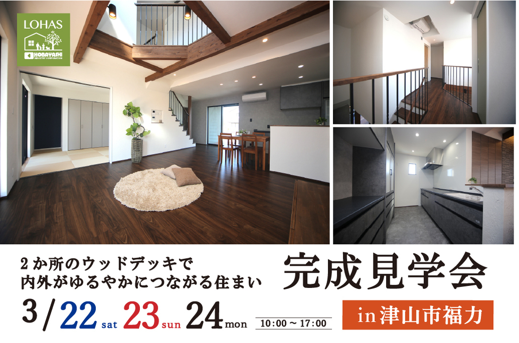 | タイトル | 2か所のウッドデッキで内外がゆるやかにつながる住まい完成見学会 |
