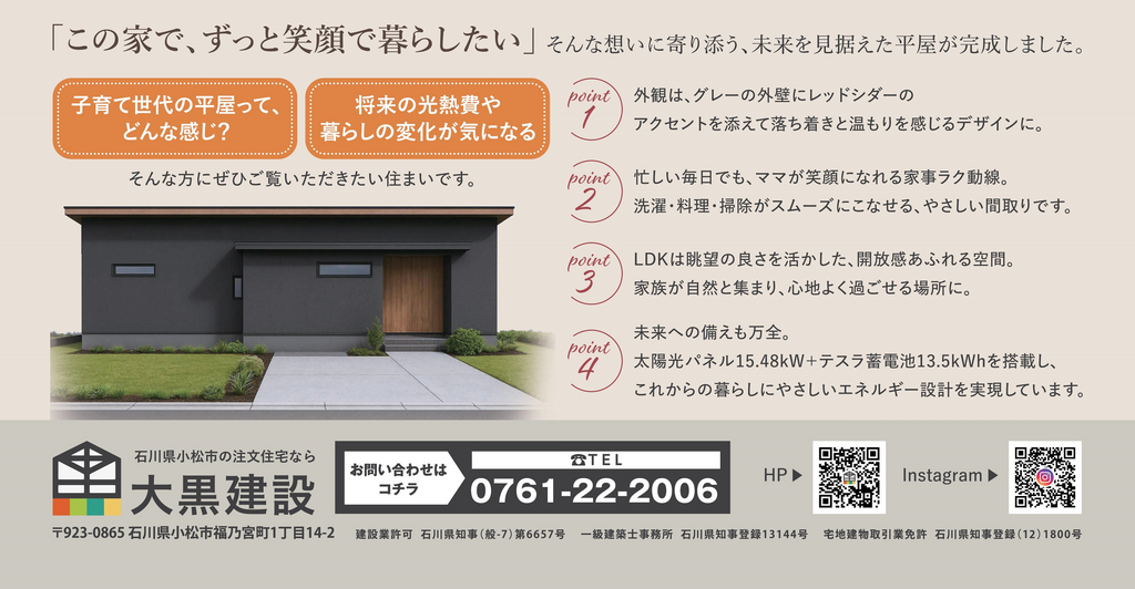 未来を見据えた、子育て家族の平屋見学会