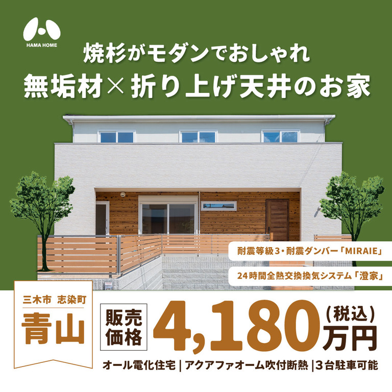 | タイトル | 【三木市】無垢床が心地よいモデルハウス |