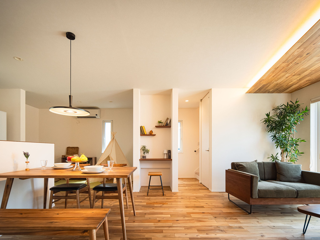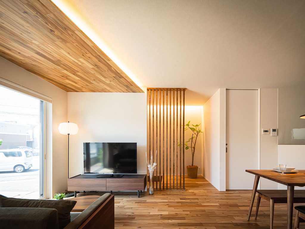 01 | アカシア無垢材がここちよい、16帖の寛ぎLDK