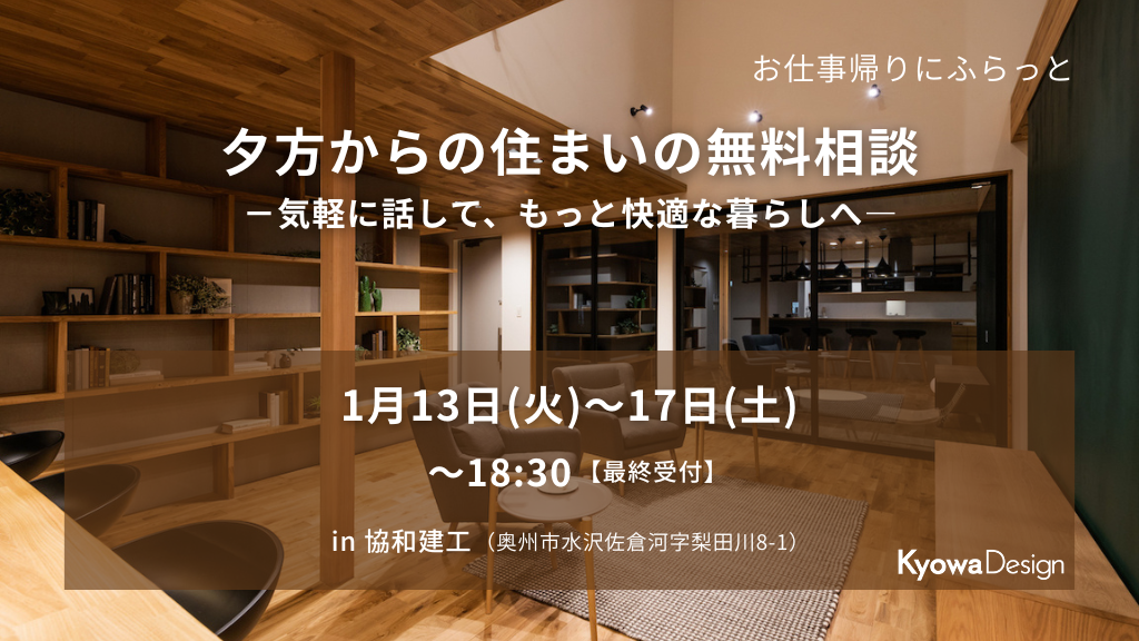 | タイトル | お仕事帰りにふらっと/夕方からの住まいの無料相談 -気軽に話して、もっと快適な暮らしへ― |