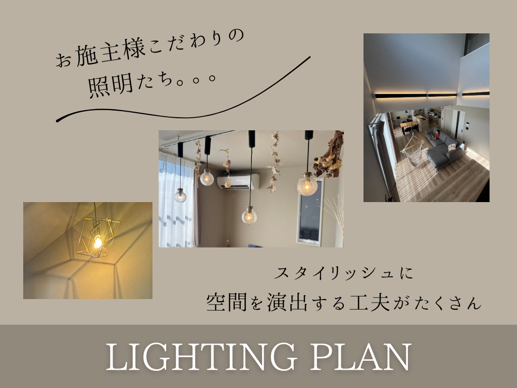 吹き抜けから光が差し込む開放的なリビング、家族の会話が弾むダイニングキッチン、そして、落ち着いた雰囲気のトイレ空間。