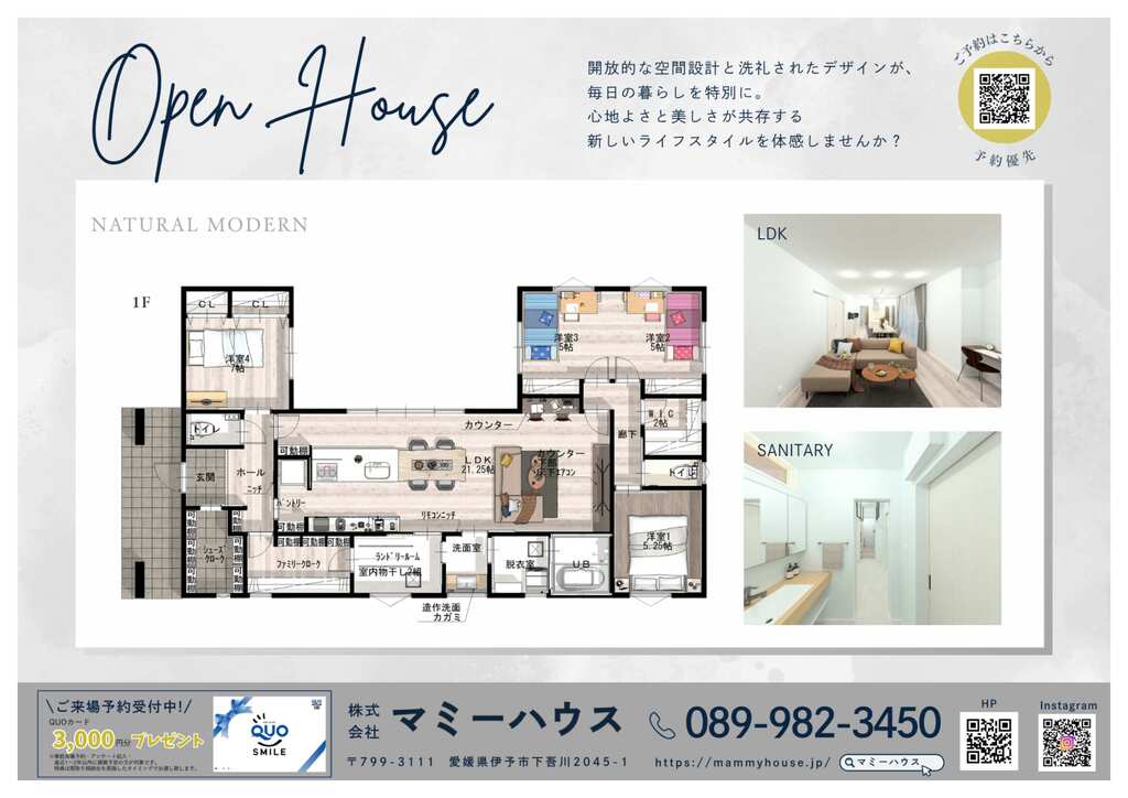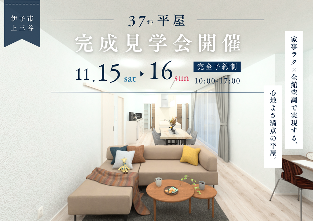 伊予市上三谷にて、子育て世代向け37坪の高性能平屋 の完成見学会を開催します!