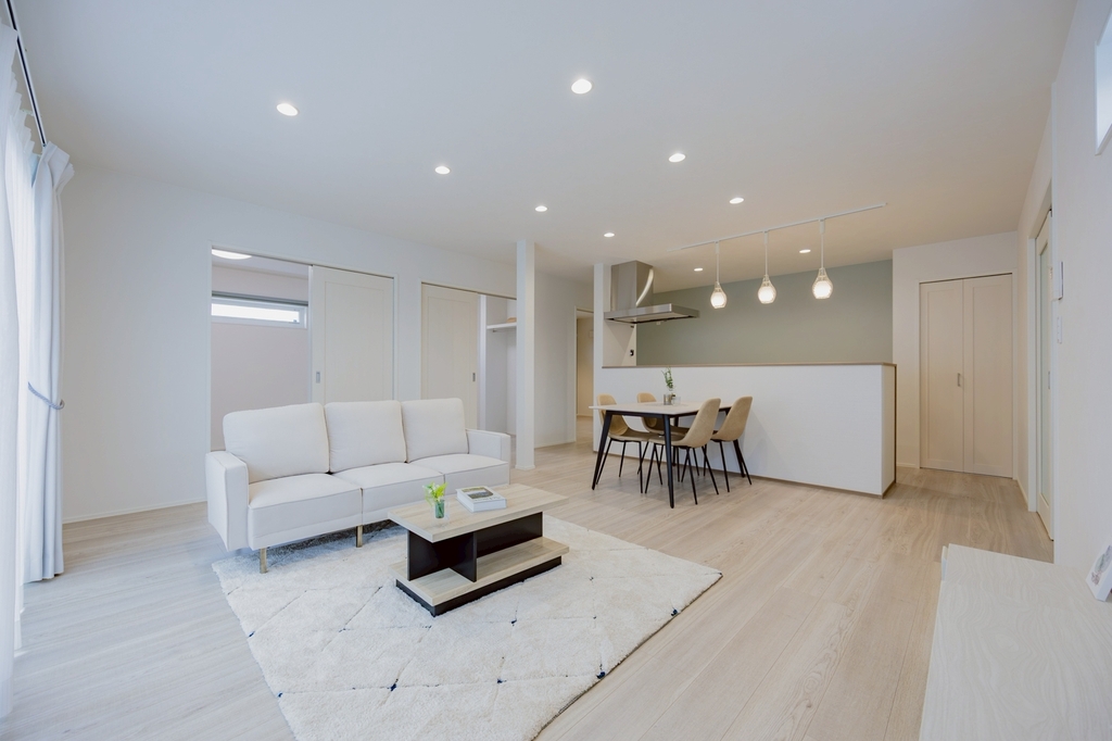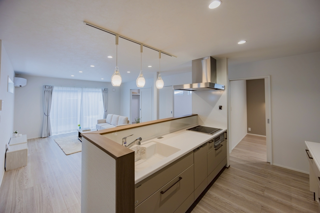 キッチンからリビング・ダイニングまでを見渡せる一体感のある空間設計も、大きな魅力のひとつです。料理をしながらでも家族の様子を自然に感じることができ、コミュニケーションが取りやすい間取りになっています。お子さまの様子を見守りながら家事ができる安心感や、家族との会話が生まれやすい環境は、日々の暮らしにゆとりとつながりをもたらしてくれます。