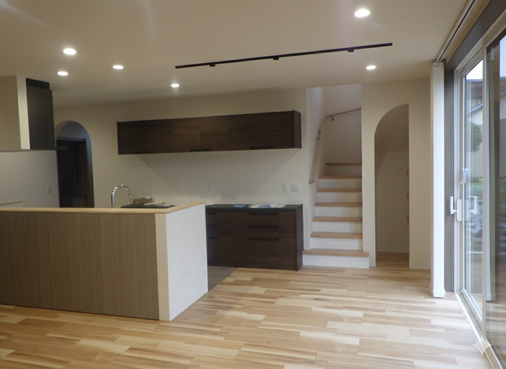 LDK全体を包み込む魅力的な大きさと空間を演出します。大きな窓からLDKに差し込み自然の光が、あたたかな雰囲気の空間を創り出し、心地よい空間づくりがなされています。