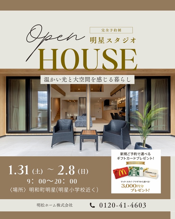 | タイトル | 1月31(土)~2月8(日) 明星スタジオ見学会 |