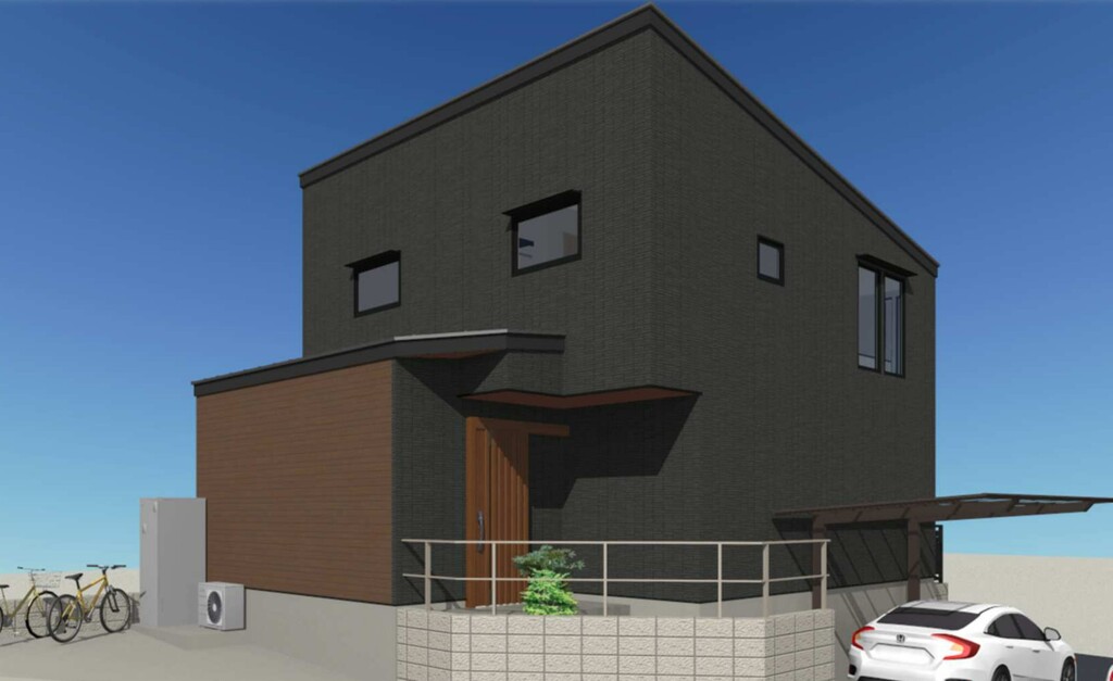今回ご紹介する住まいは、完全注文住宅「M-branche」。 日当たりや景観、暮らしやすさを丁寧に考え抜いた“奥様目線”の工夫が随所に込められた、こだわりの住まいです。ブラック×ブラウンの落ち着いた外観は、ニチハ「Fuge プレミアム」を採用した上質な仕上がり。