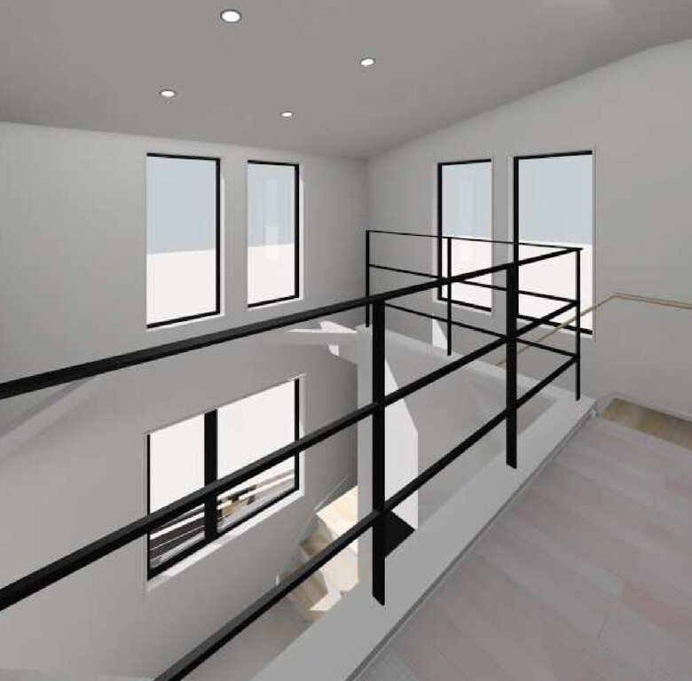 上部の吹き抜けが光を届け、どこにいても明るさと開放感を感じられます。