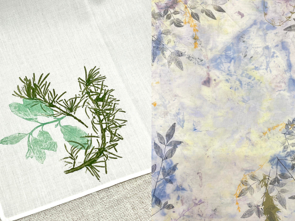 好きな植物をプレス機でプリントしてオリジナルハンカチを作ります。